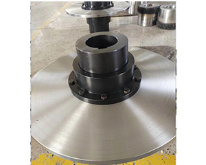 帶制動盤鼓形齒式聯軸器,該聯軸器包括有分別用來連接動力輸入軸和動力輸出軸的一個左軸套和一個右軸套,在左軸套的端部設置有鼓形齒,套在左軸套外圍的聯接套通過其內齒與左軸套上的鼓形齒相嚙合,右軸套的端部設置有連接法蘭,連接法蘭與聯接套通過穿接螺栓連接固定,一個制動盤被夾持固定在連接法蘭和聯接套之間。帶制動盤鼓形齒式聯軸器結構簡單、安裝方便,制動盤與右軸套剛性連接,制動過程中的制動負荷和振動由右軸套承擔,因而不會對鼓形齒的嚙合性能造成損害,同時制動盤自身的穩定性也提高,了運行的性。齒式聯軸器是由齒數相同的內齒圈和帶外齒的凸緣半聯軸器等零件組成。外齒分為直齒和鼓形齒兩種齒形,所謂鼓形齒即為將外齒制成球面,球面中心在齒輪軸線上,齒側間隙較一般齒輪大,鼓形齒聯軸器可允許較大的角位移(相對于直齒聯軸器),可齒的接觸條件,提高傳遞轉矩的能力,延長使用壽命。有角位移時沿齒寬的接觸狀態。