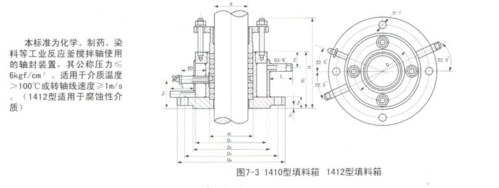 本標準為化學、制藥、染料等工業反應釜攪拌軸使用的軸封裝置,其公稱壓力小于等于6kgf/cm