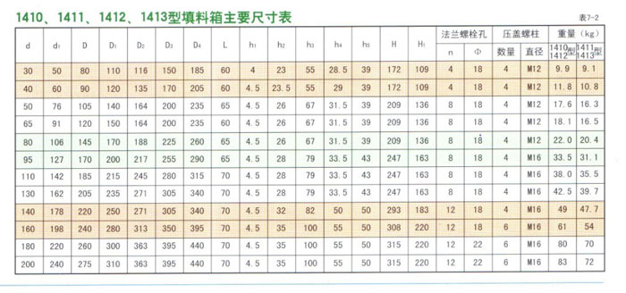 一、1410、1411型碳鋼填料箱,1412、1413型不銹鋼填料箱