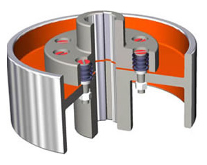 弹性套工作是受压缩变形,由于弹性套的厚度较薄,体积小,弹性变形有限,所以,弹性套柱销联轴器虽可补偿轴线位移和弹性,但轴线位移许用补偿量较少,弹性 较弱。弹性套柱销联轴器是依靠柱销组的锁紧力而产生于接触面的摩擦力矩,并压缩橡胶弹性套来传递转矩。适用于安装底座刚性好、对中精度较高、冲击载荷不 大、对减振要求不高的中小功率轴系传动。